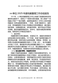 XX单位2025年度档案整理工作总结报告.docx