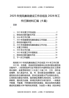 2025年党风廉政建设工作总结及2026年工作打算材料汇编(4篇).docx
