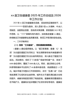 XX县卫生健康委2025年工作总结及2026年工作计划.docx