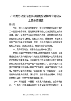 在市委办公室传达学习党的全会精神专题会议上的总结讲话.docx