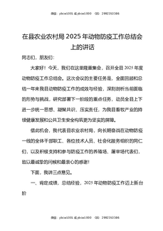 在县农业农村局2025年动物防疫工作总结会上的讲话.docx