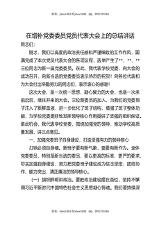 在增补党委委员党员代表大会上的总结讲话.docx