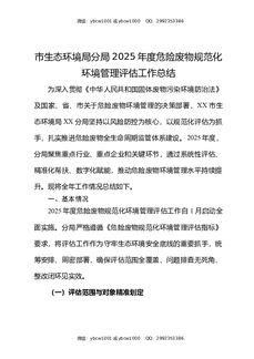 市生态环境局分局2025年度危险废物规范化环境管理评估工作总结.docx