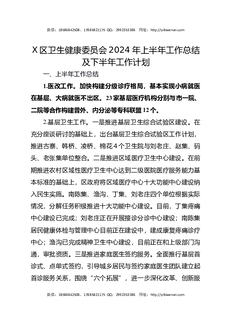 X区卫生健康委员会2024年上半年工作总结及下半年工作计划.docx