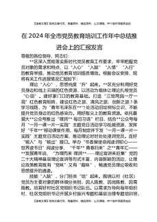 在2024年全市党员教育培训工作年中总结推进会上的汇报发言.docx
