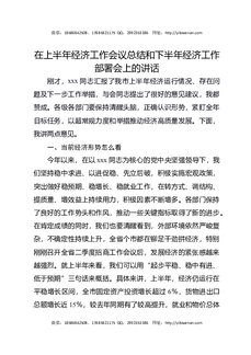 在上半年经济工作会议总结和下半年经济工作部署会上的讲话.docx