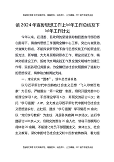 镇2024年宣传思想工作上半年工作总结及下半年工作计划.docx