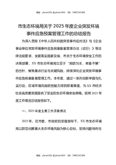 市生态环境局关于2025年度企业突发环境事件应急预案管理工作的总结报告.docx