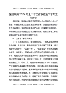 区财政局2024年上半年工作总结及下半年工作计划.docx