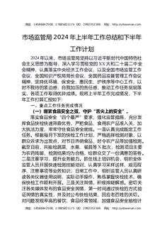 市场监管局2024年上半年工作总结和下半年工作计划.docx