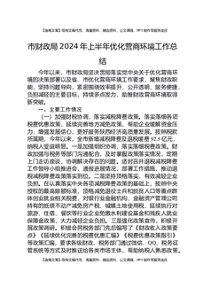 市财政局2024年上半年优化营商环境工作总结.docx
