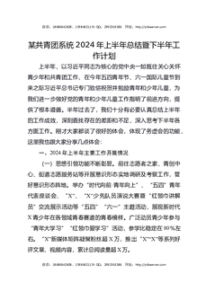 某共青团系统2024年上半年总结暨下半年工作计划.docx