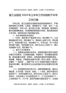 县工业园区2024年上半年工作总结和下半年工作打算.docx