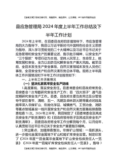 县应急管理局2024年度上半年工作总结及下半年工作计划.docx