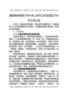 县教育体育局2024年上半年工作总结及下半年工作计划.docx