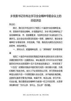 乡党委书记在传达学习全会精神专题会议上的总结讲话.docx
