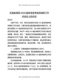 在县教育局2026届高考备考视导调研工作总结会上的讲话.docx