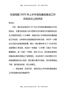 在县残联2025年上半年党风廉政建设工作总结会议上的讲话.docx