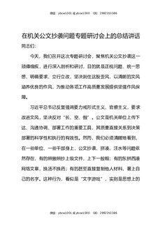 在机关公文抄袭问题专题研讨会上的总结讲话.docx