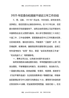2025年区委办拟提拔干部近三年工作总结.docx