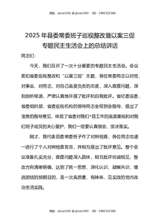 2025年县委常委班子巡视整改暨以案三促专题民主生活会上的总结讲话.docx