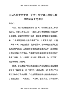 XX县委常委会扩大会议暨三季度工作总结会议上的讲话.docx