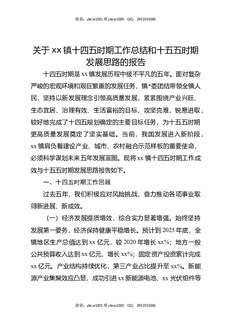 关于XX镇十四五时期工作总结和十五五时期发展思路的报告计划.docx