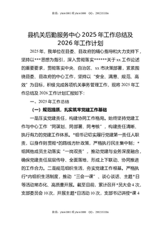 县机关后勤服务中心2025年工作总结及2026年工作计划.docx