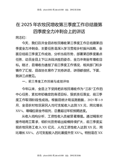 在2025年农牧民增收第三季度工作总结暨第四季度全力冲刺会上的讲话.docx