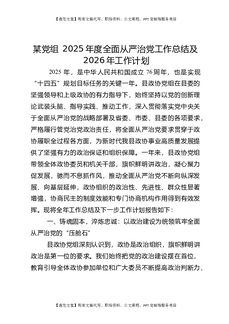 某党组2025年度全面从严治党工作总结及2026年工作计划.docx