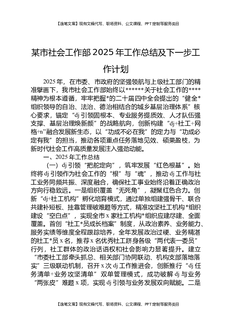 某市社会工作部2025年工作总结及下一步工作计划.docx