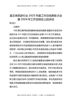 县文体旅游行业2025年度工作总结表彰大会暨2026年工作安排会上的讲话.docx
