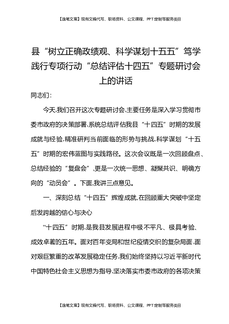 县树立正确政绩观科学谋划十五五笃学践行专项行动总结评估十四五专题研讨会上的讲话.docx