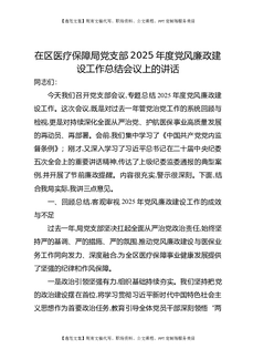 在区医疗保障局党支部2025年度党风廉政建设工作总结会议上的讲话.docx