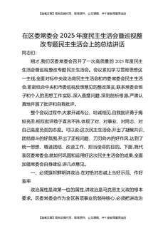 在区委常委会2025年度民主生活会暨巡视整改专题民主生活会上的总结讲话.docx