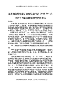在市商务局党委扩大会议上传达2025年中央经济工作会议精神时的总结讲话.docx