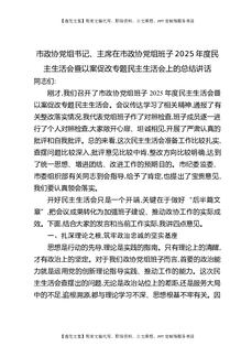市政协党组书记、主席在市政协党组班子2025年度民主生活会暨以案促改专题民主生活会上的总结讲话.docx