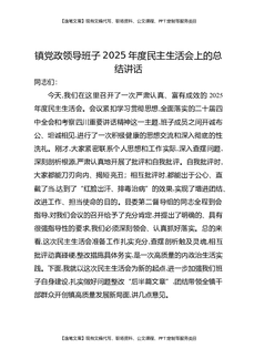 镇党政领导班子2025年度民主生活会上的总结讲话.docx