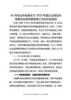 XX市生态环境局关于2025年度企业突发环境事件应急预案管理工作的总结报告.docx