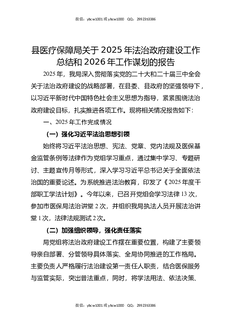 县医疗保障局关于2025年法治政府建设工作总结和2026年工作谋划的报告.docx
