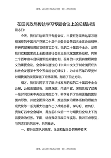 在区民政局传达学习专题会议上的总结讲话.doc