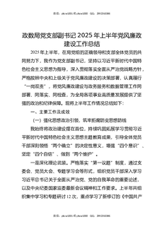 政数局党支部副书记2025年上半年党风廉政建设工作总结.docx