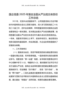 国企党委2025年落实全面从严治党主体责任工作总结.docx