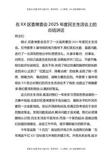 在XX区委常委会2025年度民主生活会上的总结讲话.docx