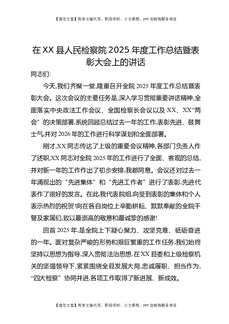 在XX县人民检察院2025年度工作总结暨表彰大会上的讲话.docx