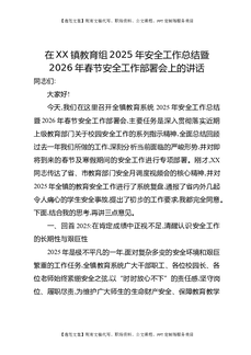 在XX镇教育组2025年安全工作总结暨2026年春节安全工作部署会上的讲话.docx