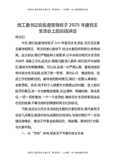 党工委书记在街道领导班子2025年度民主生活会上的总结讲话.docx
