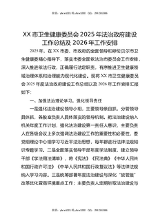 XX市卫生健康委员会2025年法治政府建设工作总结及2026年工作安排.docx