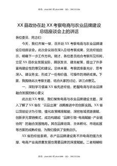 XX县政协在赴XX考察电商与农业品牌建设总结座谈会上的讲话.doc