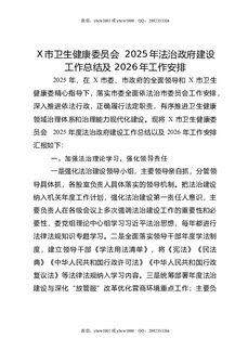 X市卫生健康委员会2025年法治政府建设工作总结及2026年工作安排.docx